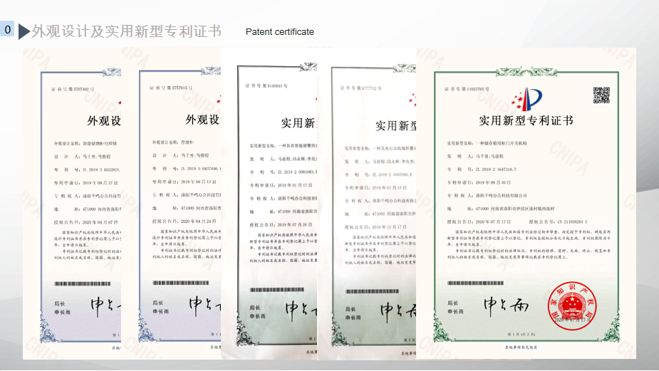 千鸣智能柜专利证书,智能柜企业认证,智能柜生产厂家排名
