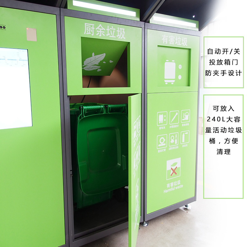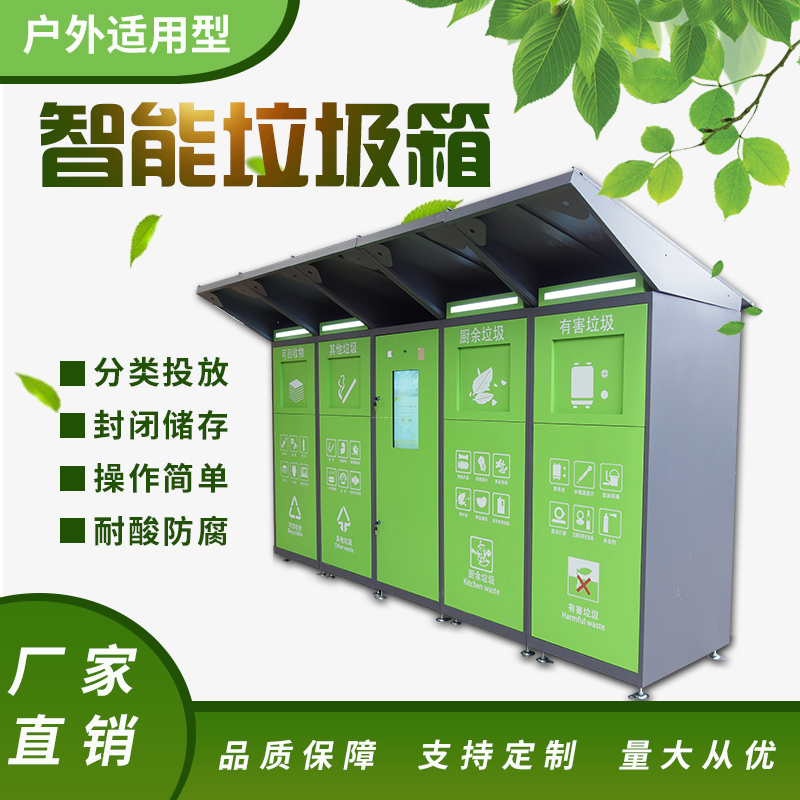 智能感应开关垃圾分类型垃圾箱主要采用清洁环保的太阳能作为系统电源供应,可作为更加低碳环保的智能化生活用品;通过智能化的运行系统和感应控制系统等,配合硬件的支持,实现人可不必接触垃圾箱,有效地解决了传统垃圾桶对使用者存在的卫生感染的隐患。