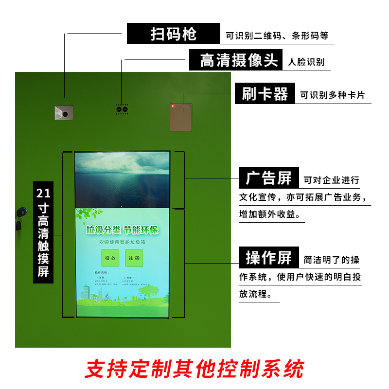 产品特点: 1.拥有智能化垃圾监测、管理系统,对垃圾的进行智能化处理,有效保证环境卫生;